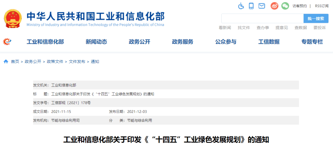 近日,工信部近日正式印發《“十四五”工業綠色發展規劃》(以下簡稱《規劃》),